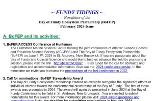 The Huntsman Marine Science Centre is thrilled to present the joint conference of Atlantic Canada Coastal and Estuarine Science Society (ACCESS) and The Bay of Fundy Ecosystem Partnership (BoFEP) on June 4-7th, 2024 in St. Andrews, New Brunswick. If you are passionate about the Bay of Fundy and Coastal Science and would like to help us advance …