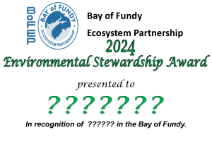 The Bay of Fundy Ecosystem Partnership (BoFEP) created an award to recognize the significant efforts of individual citizens toward the environmental stewardship of the Bay of Fundy. The award is presented to an individual that has “contributed significantly to the environmental health/sustainability of the Bay of Fundy”, preferably one who might be described as an …