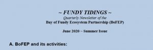 Bay of Fundy Ecosystem Partnership: Creating, Sharing, and Using Knowledge over 25 Years December 8, 2022Admin After a successful Bay of Fundy Conference (Advancing Estuarine Science and Ocean Literacy in Atlantic Canada) 17-21 May 2022, co-hosted with the Atlantic Canada Coastal and Estuarine Science Society, work by Bay of Fundy Ecosystem Partnership (BoFEP) members and partners has continued …